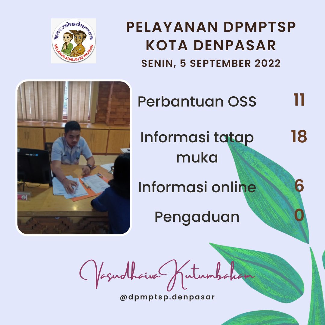 Informasi lzin layanan harian DPMPTSP Kota Denpasar pada hari Senin tanggal 5 September 2022