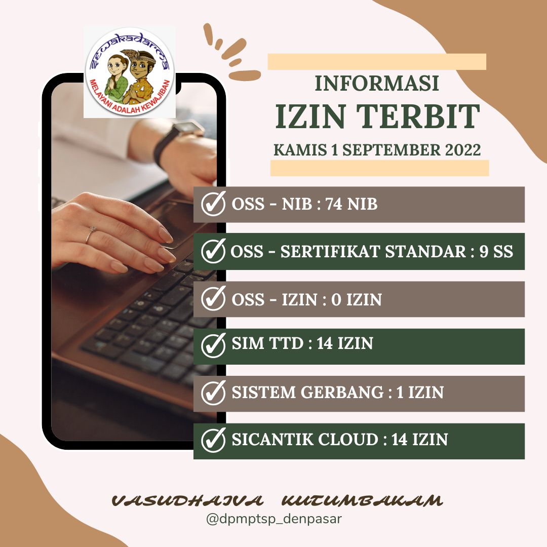 Informasi lzin terbit harian DPMPTSP Kota Denpasar pada hari Kamis tanggal 1 September 2022