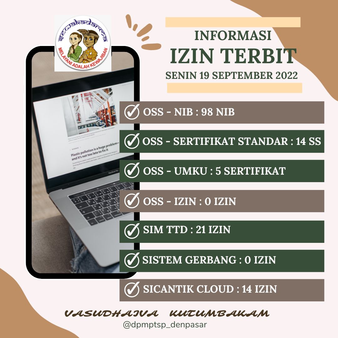 Informasi lzin terbit harian DPMPTSP Kota Denpasar pada hari Senin tanggal 19 September 2022