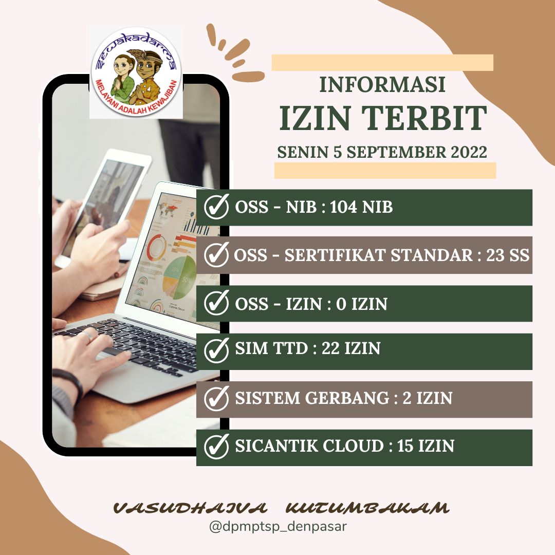 Informasi lzin terbit harian DPMPTSP Kota Denpasar pada hari Senin tanggal 5 September 2022