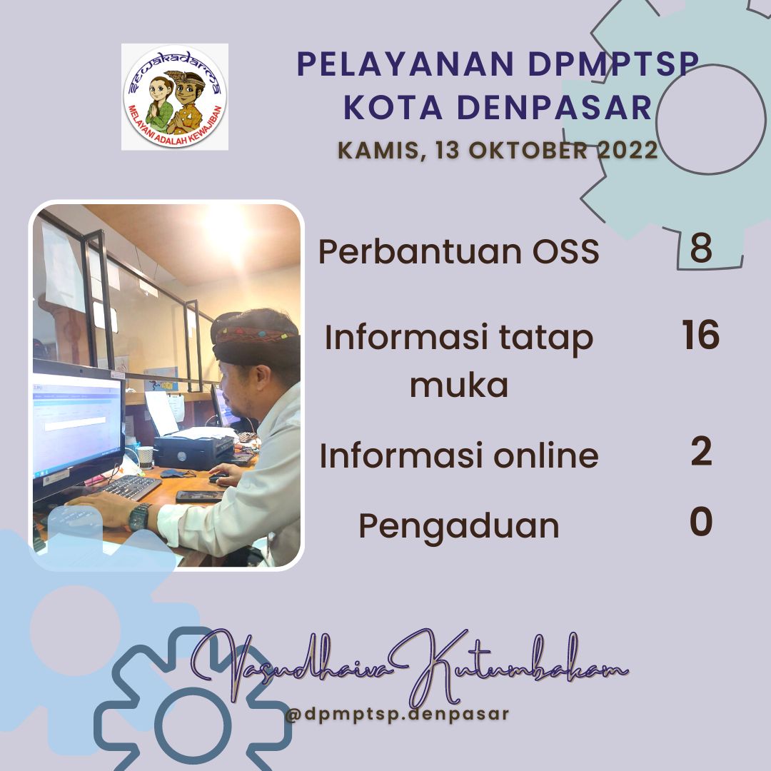 Informasi pelayanan harian DPMPTSP Kota Denpasar pada hari Kamis tanggal 13 Oktober 2022
