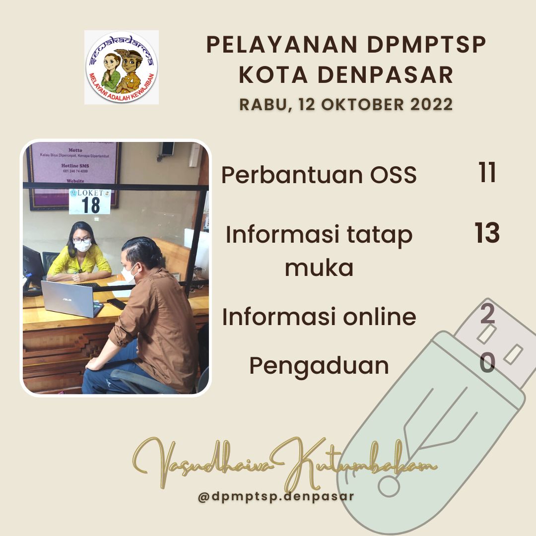 Informasi pelayanan harian DPMPTSP Kota Denpasar pada hari Rabu tanggal 12 Oktober 2022