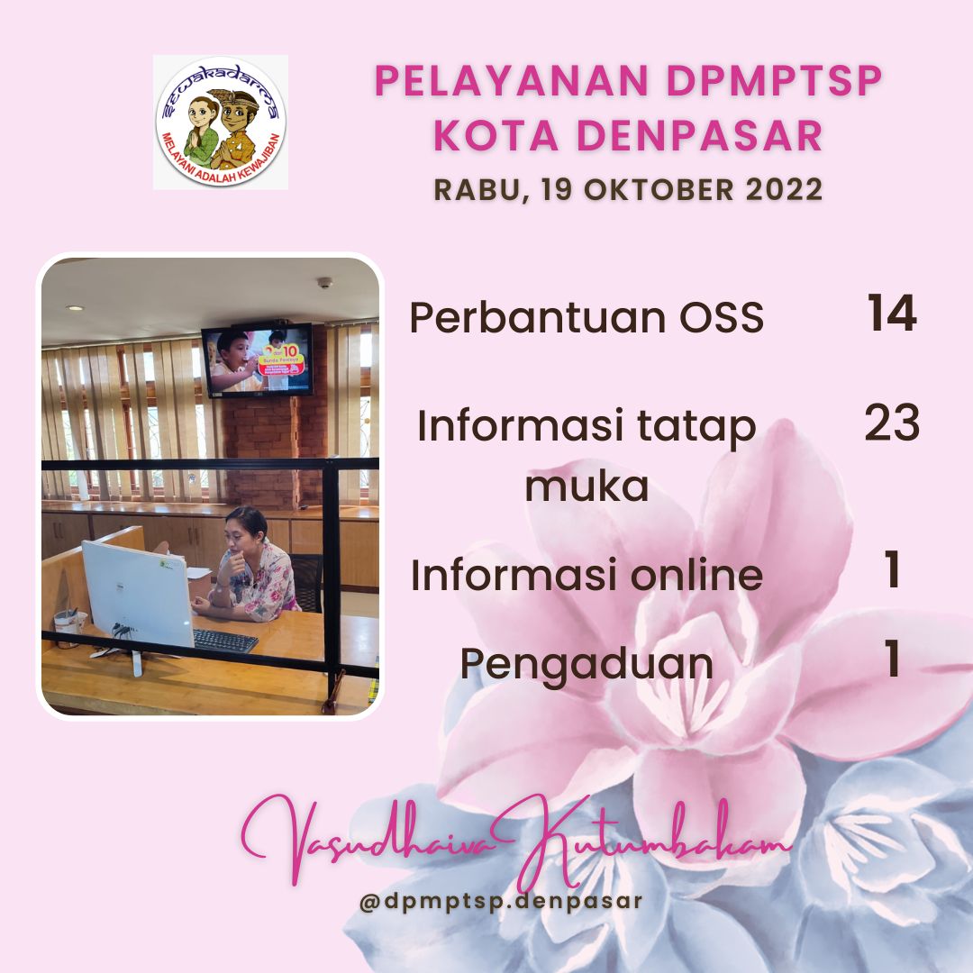 Informasi pelayanan harian DPMPTSP Kota Denpasar pada hari Rabu tanggal 19 Oktober 2022
