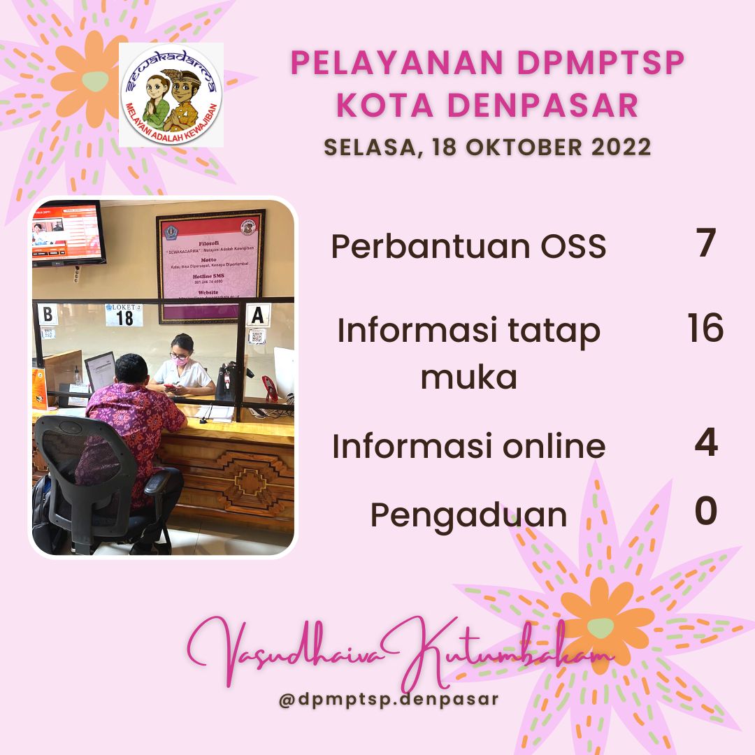 Informasi pelayanan harian DPMPTSP Kota Denpasar pada hari Selasa tanggal 18 Oktober 2022