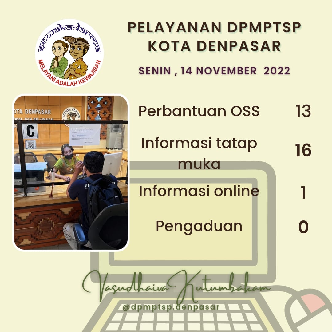 Informasi pelayanan harian DPMPTSP Kota Denpasar pada hari senin tanggal 14 November 2022